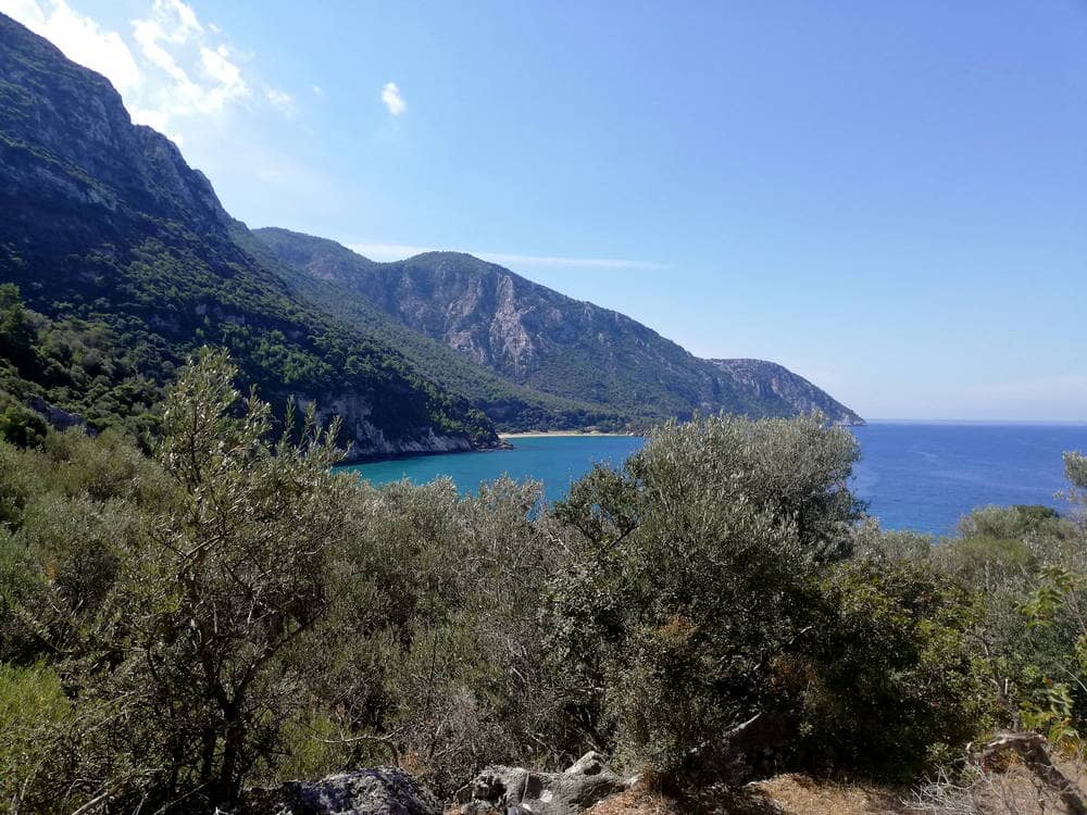 Hier im Nordwesten der Insel Samos befinden sich die beiden Strände Mikro- und Megalo Seitani. Als junger Mann bin ich vor mehreren Jahrzehnten hier entlang gewandert in Richtung Drakei. Von Samos-Stadt (dort logierte ich) bin ich seinerzeit mit dem ersten Bus am frühen Morgen nach Neo Karlovasi gefahren und von dort in Richtung Potami gegangen bis zum Autoparkplatz hinter dem Strand, von dort über einen teils markierten Pfad bis zum Ort Drakei im Westen der Insel....