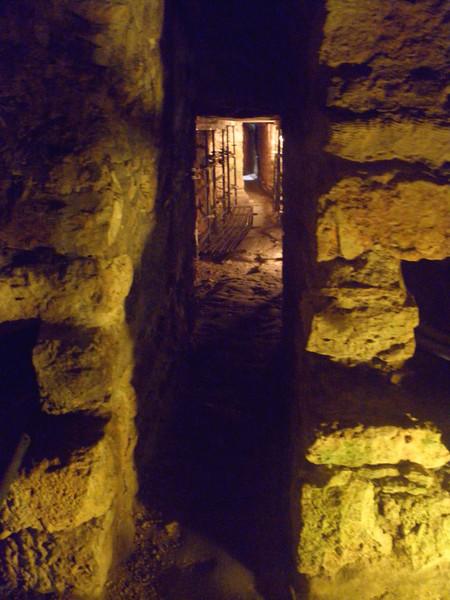 Über 1000 Jahre war die Wasserleitung intakt, doch dazu musste sie regelmäßig gereinigt werden. Aufmerksame Besucher haben das ursprüngliche Tunnelende im Süden längst schon zu Beginn des Treppenaufgangs auf der linken Seite erkannt. Der heutige Einstieg in den Tunnel führt etwas höher über eine sehr schmale und immer enger werdende Treppe hinab. Besucher die da hinunter wollen, müssen hier warten auf zurückkommende, da zwei Personen den engen Zugang nicht passieren können. Der Gang wird nach den ersten 60 Metern breiter. Auf der rechten Seite (Ostseite des Tunnels) des Bauwerks kann man die durch starke Eisengitter abgesicherte Wasserrinne sehen- etwa in einer Tiefe zwischen 4,00 - 8,00 Meter.